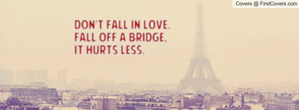 After falling sharply from cloud nine, I like most people, took a very negative view on love. I felt like the whole experience had been like falling down a very beautiful mountain side. Yes, as I flailed by I had seen some very amazing things, but then I kept falling, bruised and unable to even snapchat the jaw dropping beauty. And yes, at the beginning my stomach had felted flipped, shaken, and exhilaratingly free. But by the end my body was covered in vomits and regret. Gross.