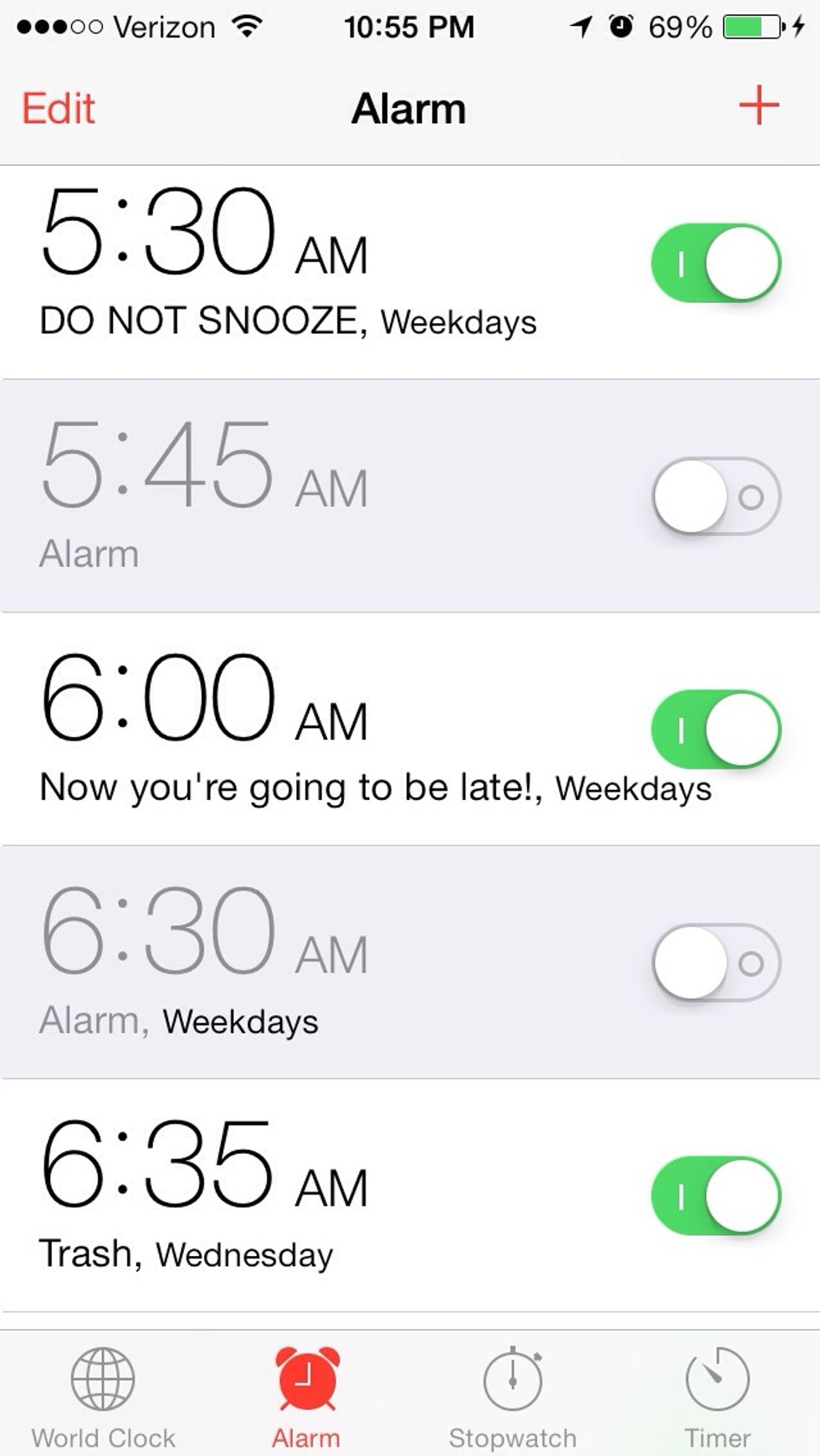 5. Instead of setting one alarm, like a normal person, we set at least five.