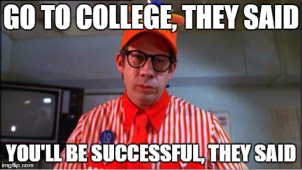 Aside from the spoiled friends that are few and far between, many of us are riding the “broke af” struggle bus with the same goal in mind: to get a degree so we don’t have to keep buying Great Value brand foods and ordering off the dollar menu. So hold your head high, take comfort that you’re not alone, and remember the important lessons this lifestyle has taught you, like how to make $10 last you a week.