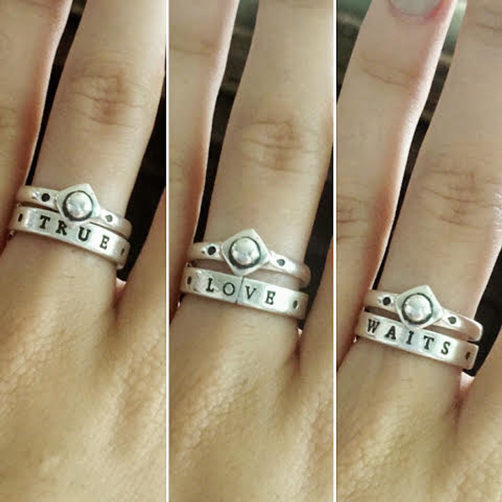 Paired with a ring that my best friend gave me, my purity ring sits on my finger. This flat band of silver holds three words that mean so much to me, “True Love Waits.”