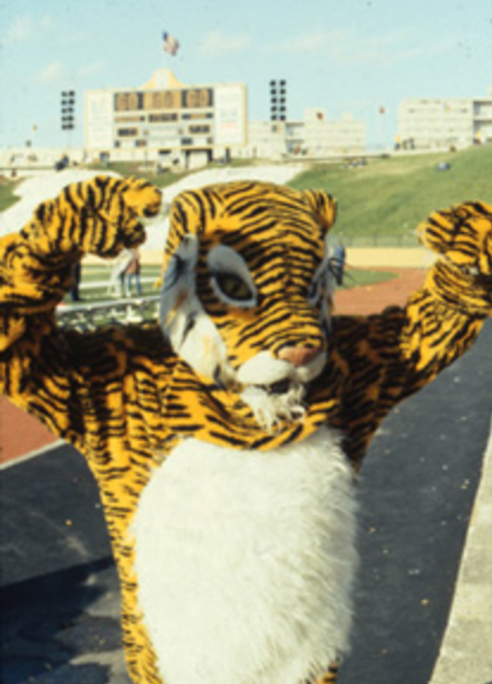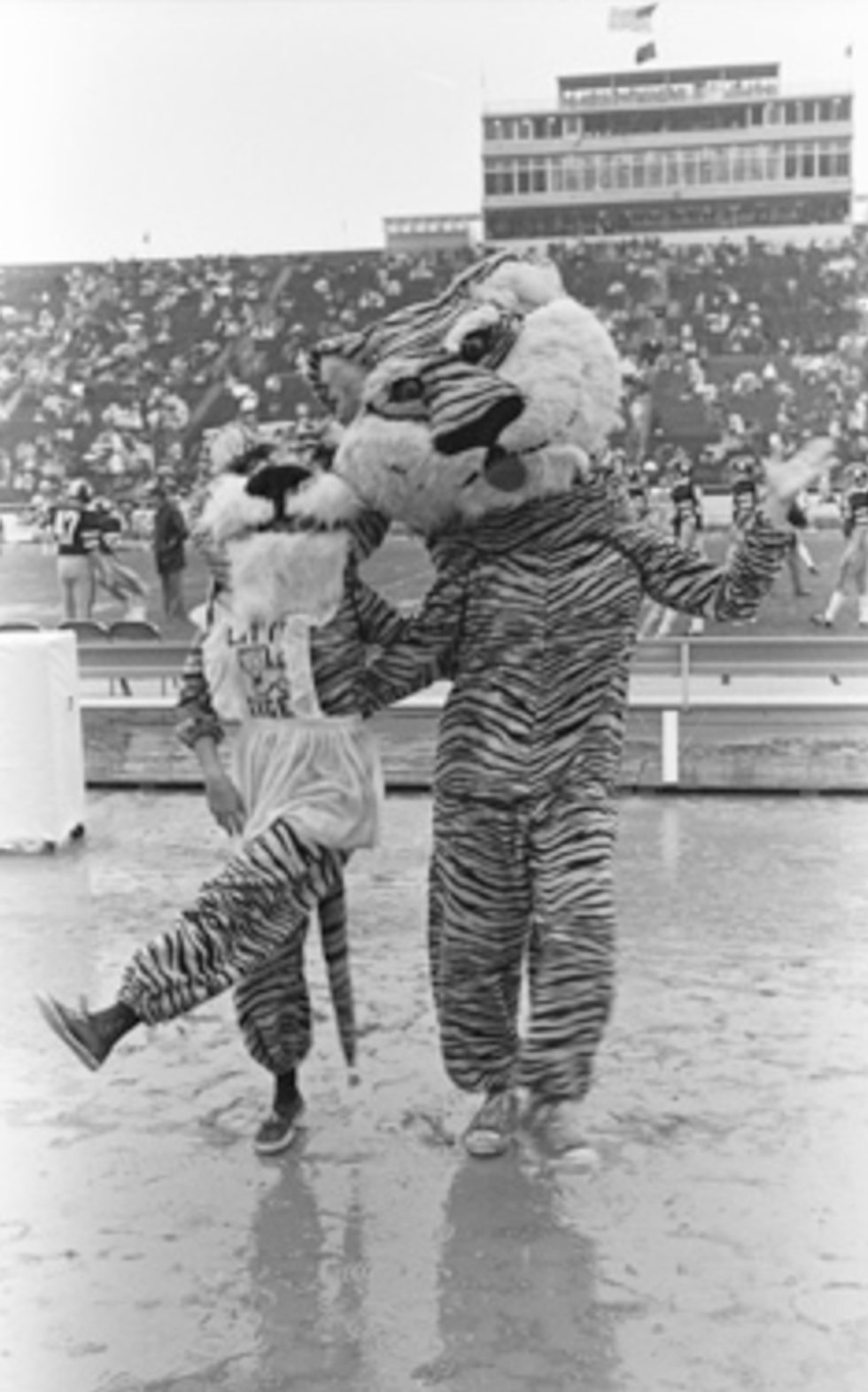 14. In the '60s, tiger mascot costumes were introduced. The first costume featured a cloth costume and a paper maché head.