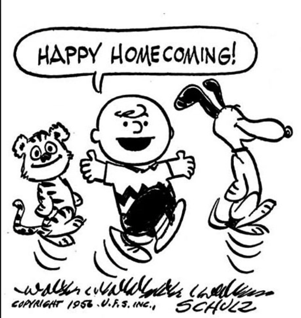 13. In 1956, Charles Schulz, of "Peanuts," drew a cartoon version of the tiger with Charlie Brown and Snoopy wishing Mizzou fans a "Happy Homecoming!" It first appeared in the Nov. 30, 1956 issue of The Maneater and again in ShowMe magazine in 1957. Fun fact, in the grass directly beneath the tiger, the name "Walker" was hidden as a shout out to Schulz's friend Mort Walker, the creator of "Beetle Bailey" and a Mizzou Alum.