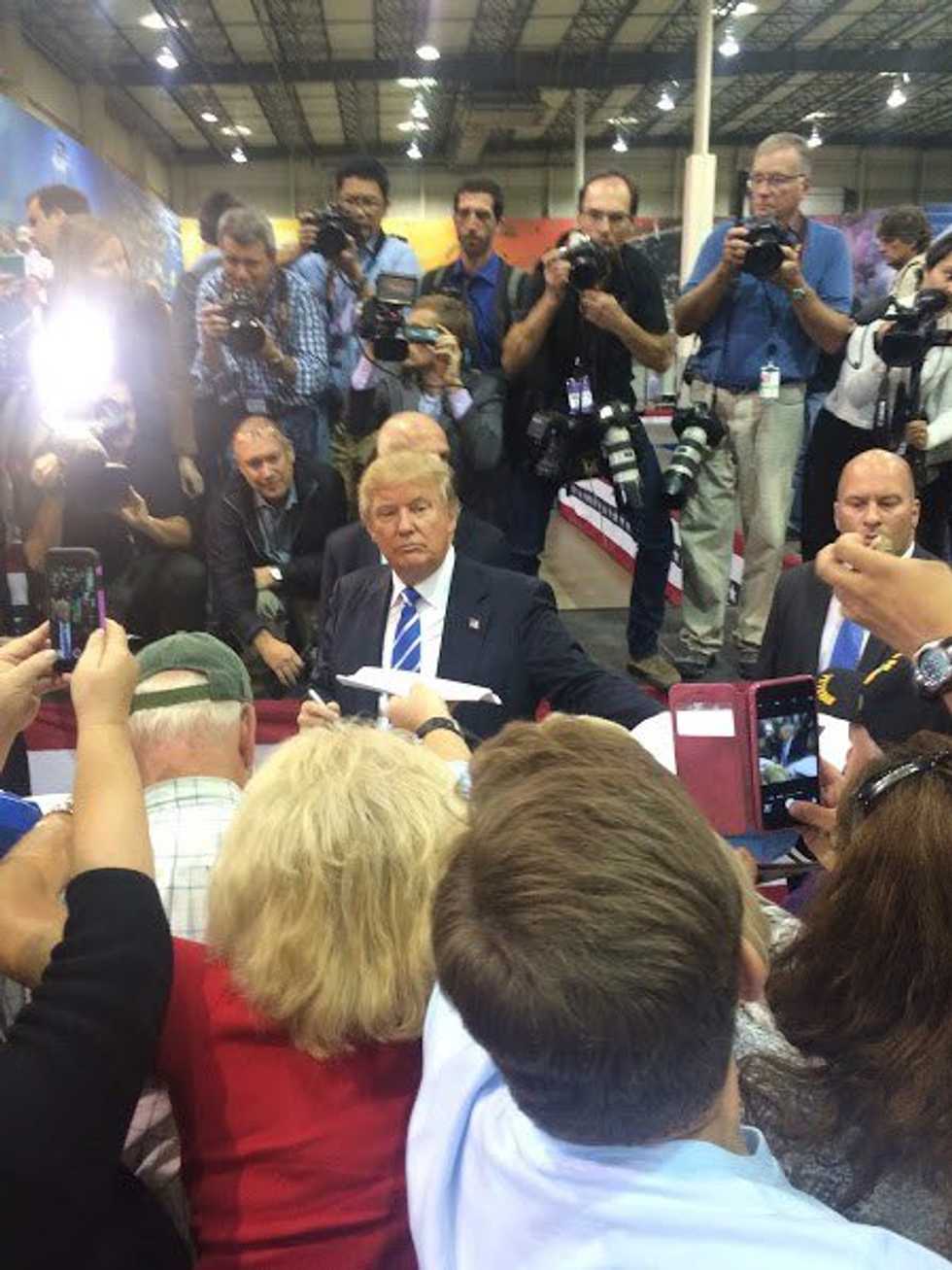 We stood in line and listened to those around us talk. Plenty of broadcasters were there interviewing people, and we were asked several times to sign to get Trump on the ballot. We gladly smiled and took the Trump 2016 stickers. Heck, if you’re going to be there, you might as well fully experience it.