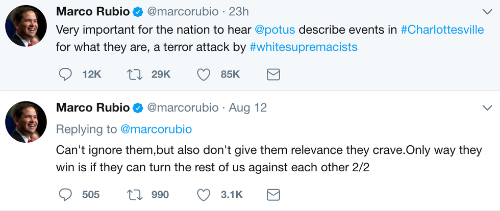 Senator, and former GOP Presidential candidate, Marco Rubio called upon Trump to specifically call the movement out in a duo of tweets:
