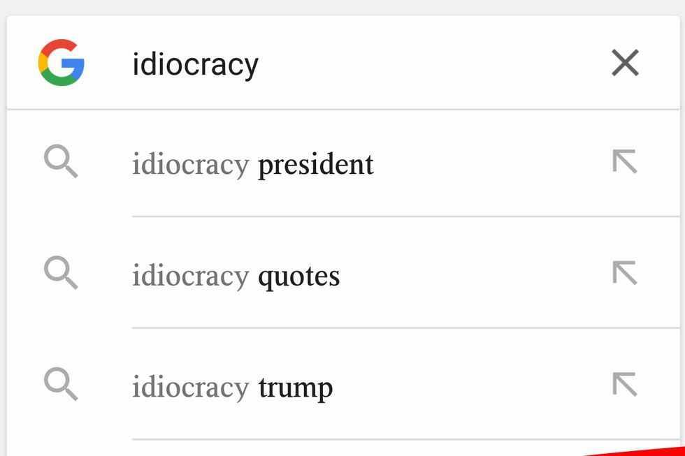 In addition to Trump’s unwelcomed interruption in class, I notice that my peers can barely spend a full day without reading a tweet or post from this man. I sat in my dorm room with a friend for nearly three hours, solely talking about Trump and his idiocracy (When you google idiocracy, “idiocracy Trump” shows as the recommended search).