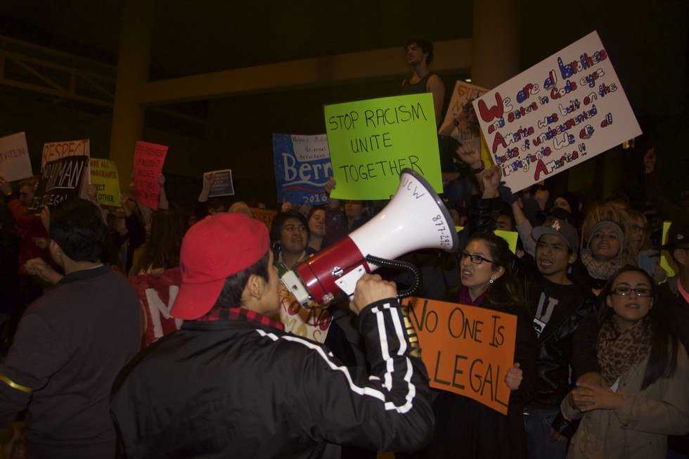 Trump's views on deporting illegal immigrants and building a giant wall did not go without protest. One local group "Somos Uno" or "We Are One" chose to take a stand. The group organized and protested Trump's relations towards minority groups, specifically Latinos, and called for an end to racism.