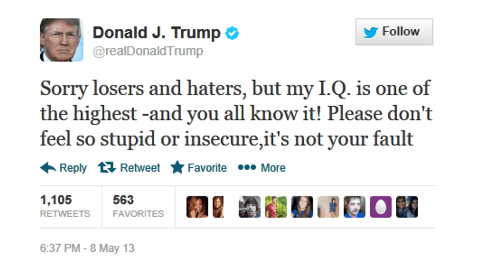 13. "It's just not professional as is, but as a figure representing our country, the United States of America, it's far worse than unprofessional. It's never thought through beforehand, writing poorly and replying to ridiculous conversations where there are far more important matters to be taken care of." Emily, 19.