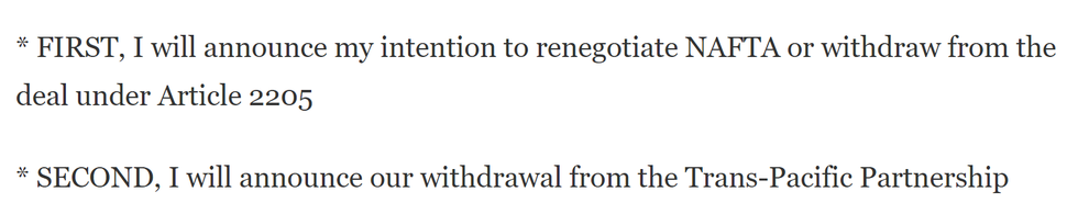 With outsourcing becoming a growing issue, Trump wants to pull the U.S out of NAFTA and the Trans-Pacific Partnership. He believes these trade deals have caused more harm than good to the U.S economy and working class. Multiple times, he has proposed the use of tariffs on companies that move overseas but want to continue selling their products in the U.S. This could potentially raise the cost of goods in the U.S and push countries to respond with their own tariffs, so many Republicans are pushing for a reward system that lowers tax rate on companies that stay in the U.S.