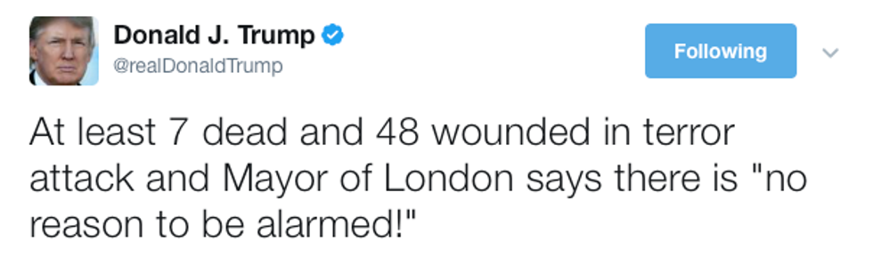 Another instance that drew plenty of attention; the president partially quoted the Mayor of London Sadiq Khan following the terror attacks on and near the London bridge on Monday.