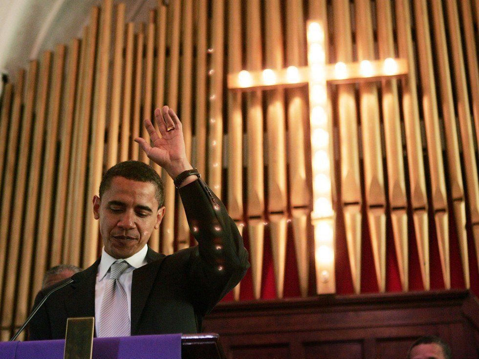 Obama's attendence declined after several incidents. Metal detectors and security were set up outside the church, secret service swarmed everywhere, snipers were on top of nearby buildings, and the pastors spoke about Obama instead of God. Obama was offended, so he now goes to a small church next to the White House or the chapel at Camp David.