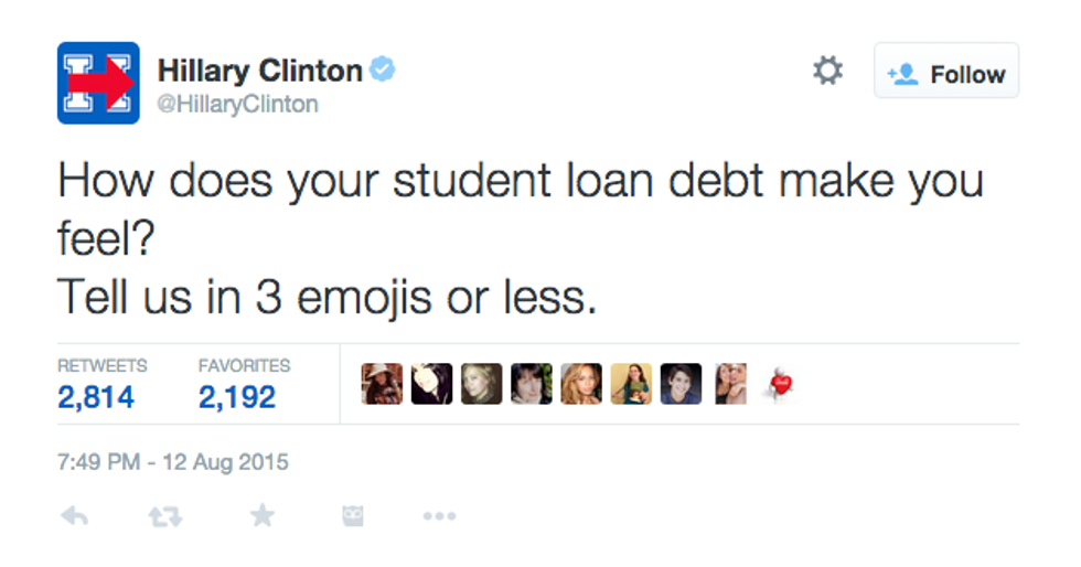 Bernie cares about issues near and dear to our hearts, like income inequality and student debt. Unlike this example courtesy of Hillary Clinton.