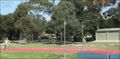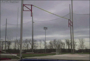 So this thing happens sometimes where you spring load your pole but instead of using that momentum to swing up, it shoots you back onto the track. This is the worst. You fall on your butt and the pole usually flies far away from you making everyone turn and gaze upon your sprawled out self.