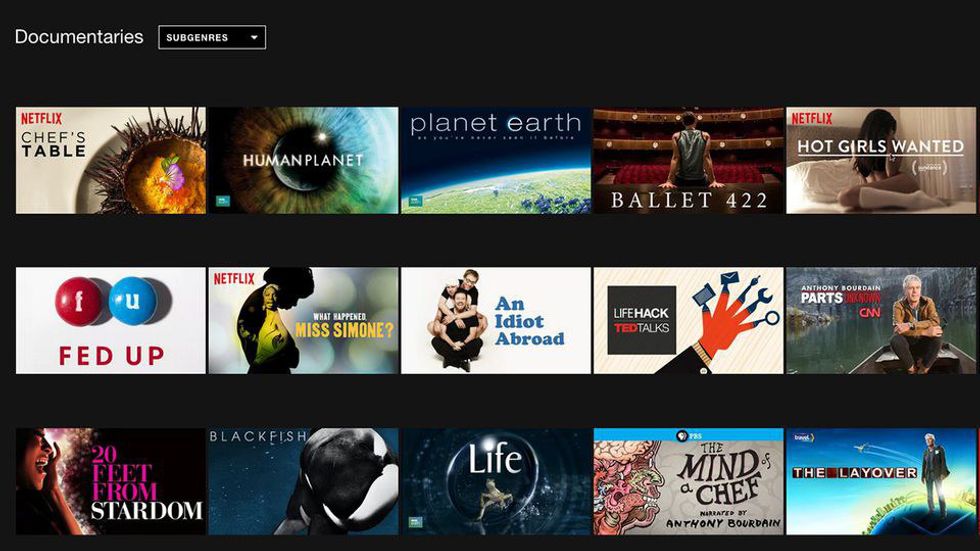 Netflix, as it turns out, has a section entitled "Documentaries." What the heck is a documentary, though? Who knows! If you're really bored, you might choose to click on one of these so-called "documentaries" and let it play as background noise to your Internet browsing so you still meet your Netflix quota for the day. Beware—as rumor has it, documentaries are often full of information.