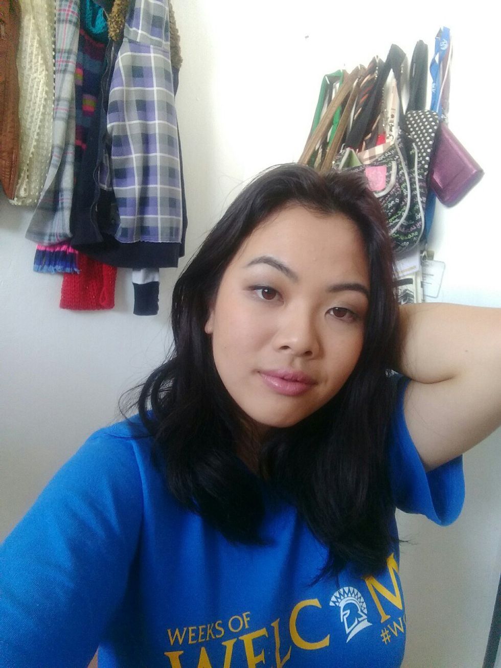 It's a pretty simple makeup style compared to what we tend to see today. Unfortunately, you can clearly see my dark circles and a few pimples here and there. I'm not very used to not sporting a winged eyeliner and my brows look terrible from my attempts to make the thin brows without using concealer.