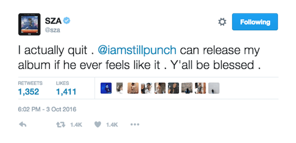 She sat on the album for over a year. She even asked Punch, the president of her label at TDE to hire additional writers because she thought it was going to “suck”, and make no sense to people. If she quit- we would never know we missed out on anything- and she would believe it was because she wasn't good enough.
