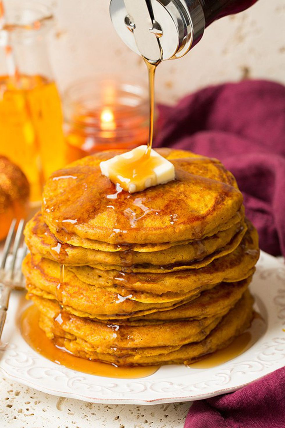 Who doesn't love pumpkin pancakes? These pancakes are such a delicious way to start face stuffing day off right. I like to add chocolate chips to this recipe, but if chocolate's not your thing (then you're crazy) you can leave them out. Check out the recipe here.