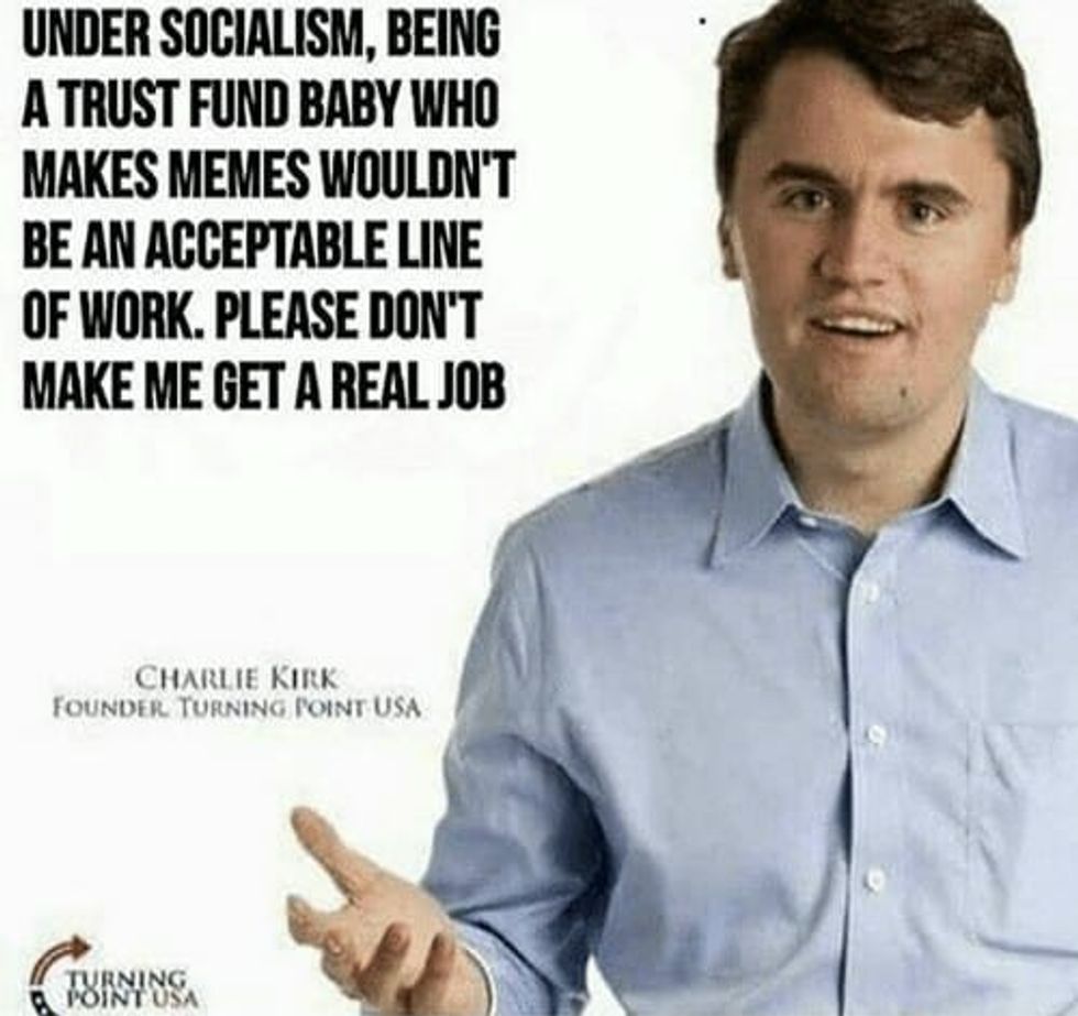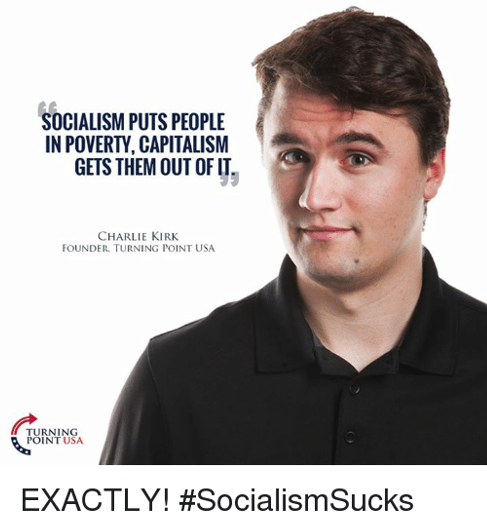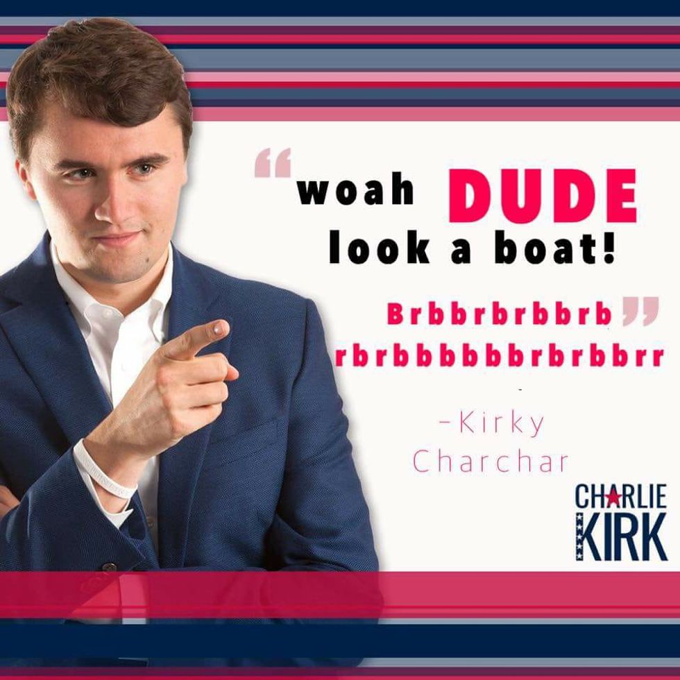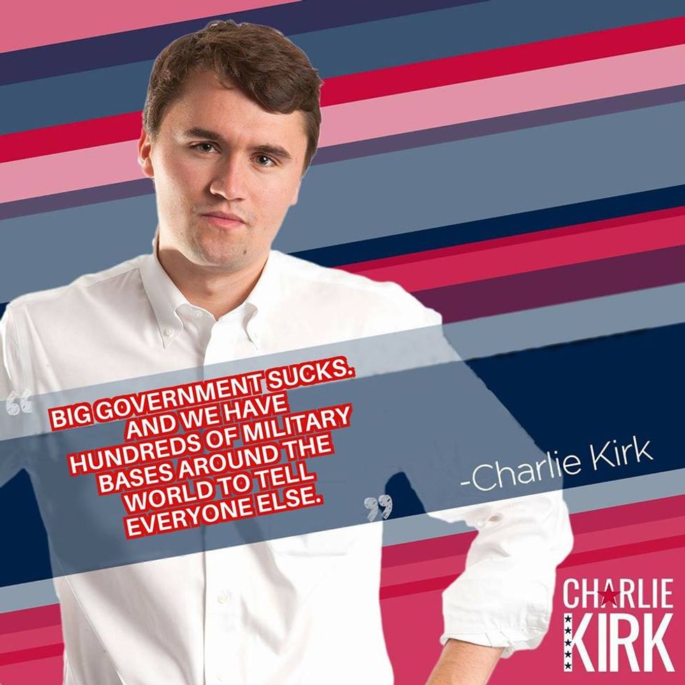 One of the greatest gems of this culture is Turning Point USA. TPUSA, "a national student movement dedicated to identifying, organizing, and empowering young people to promote the principles of free markets, [sic] and limited government," was founded in 2012 by Charlie Kirk, a now 24-year-old whose entire existence immediately made sense to me when I found out he grew up in Wheeling, IL.