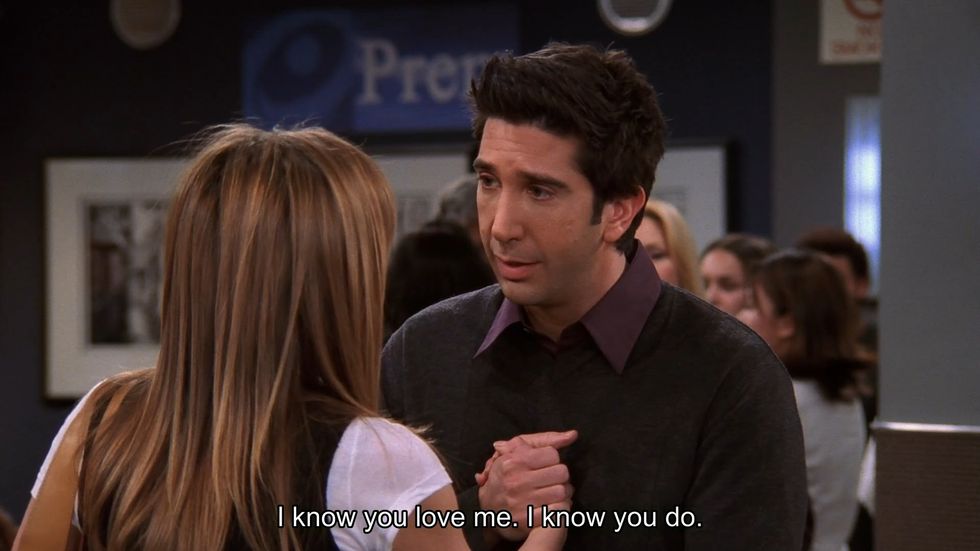 This demonstrates how TV romanticizes the toxic behavior of men. Ross' behavior is meant to be endearing, not gross. The same is with Christian Grey. He's broken, fucked up. It's not his fault he's that way. The media wants to believe these endearing, fragile men can be fixed with love, and this kind of gas lighting is exactly how real women end up in relationships with abusive men.