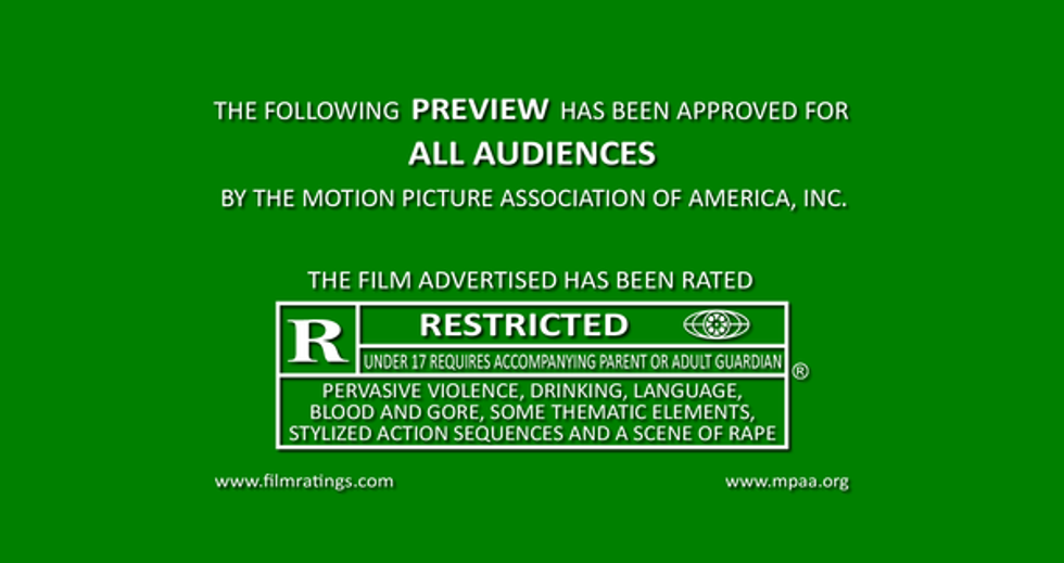 Example 2: Almost every human being on the planet is familiar with this image. This is an example of the Motion Picture Association of America (MPAA) rating systems. Because of these prefaces before trailers, you can decide whether or not you want to sit through a sex scene with your parents or, for those with penises, trigger an erection next to your date.