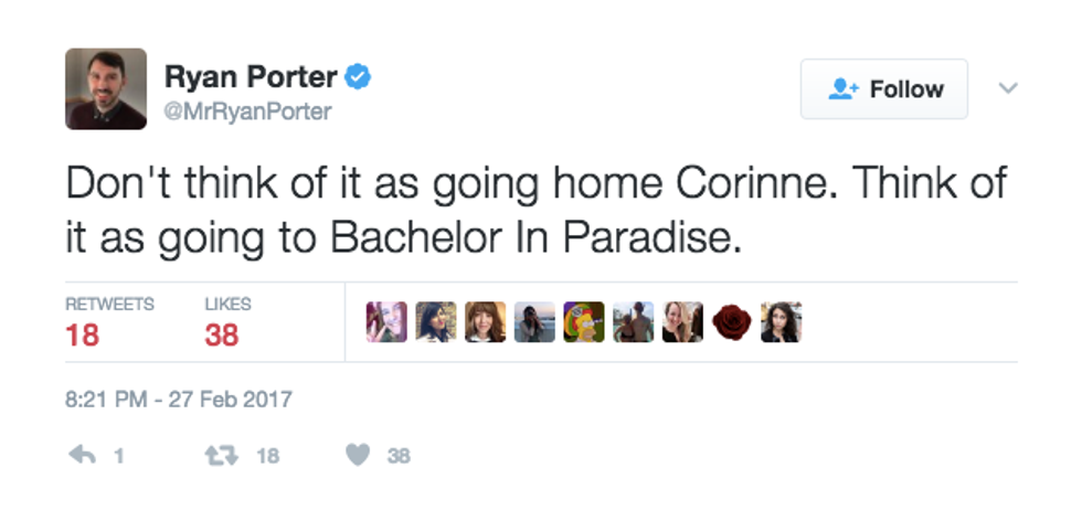 Seriously, Corinne's speech when she went home was amazing.