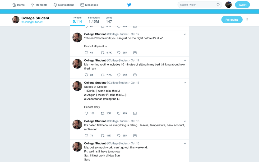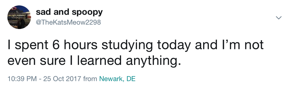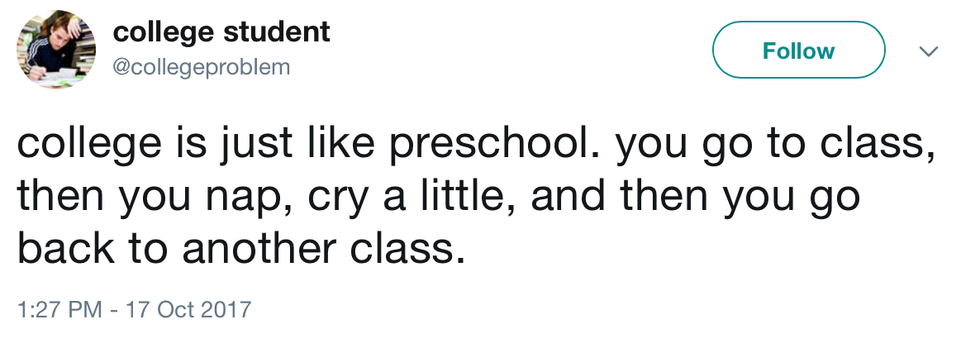 In high school, we barely had to study and we would get a 90. Now we can study for 6 hours and get a 46.