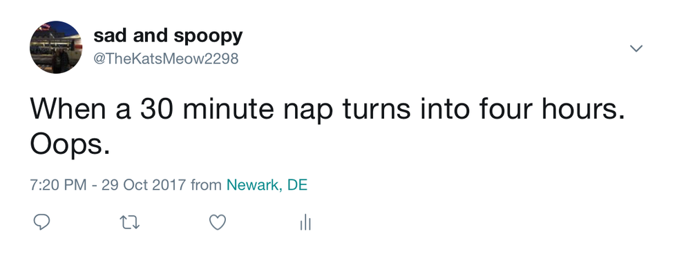 We all know the feeling of wanting a 30 minute nap but it ends up turning into sleeping for most of the day and being up all night, again.