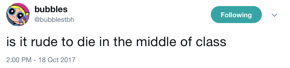It's alright to die in the middle of class as long as it isn't disruptive to everyone else.
