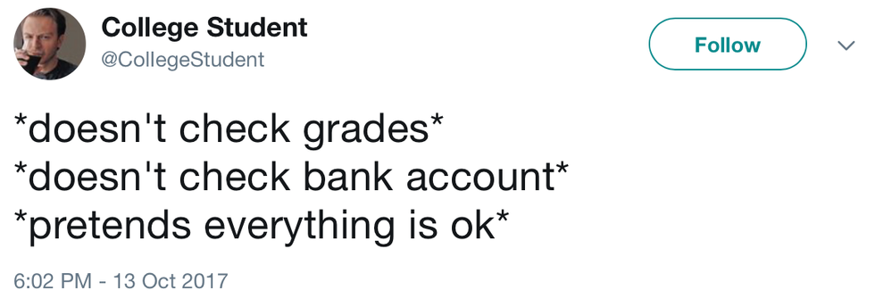 There will always be the point where we don't check anything and pretend that it's all okay and pray our card goes through at Dunkin' Donuts.