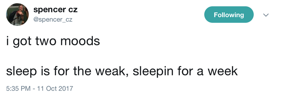 There are the weeks where we never sleep and there are weeks where all we do is sleep.