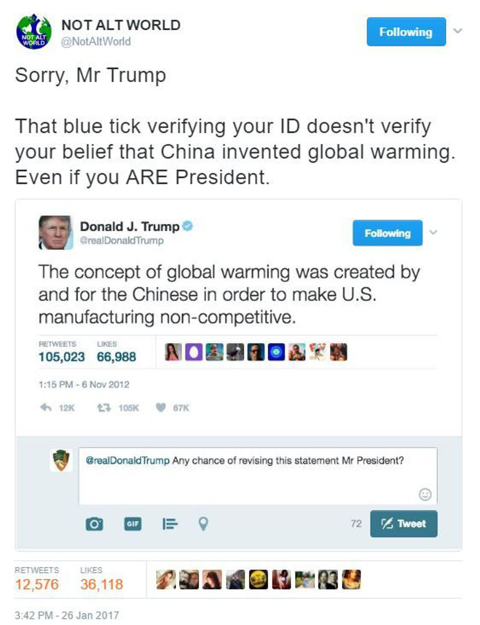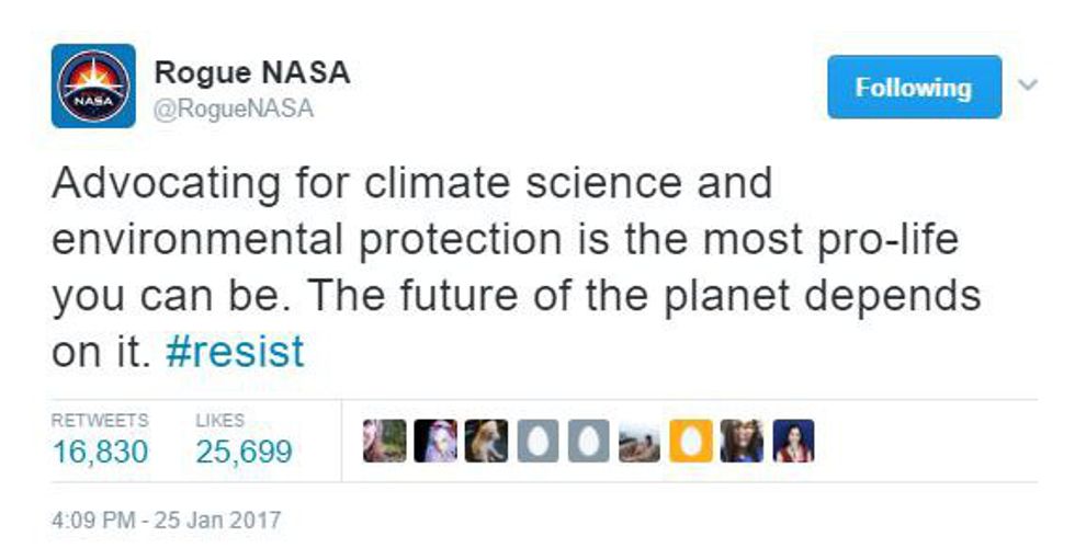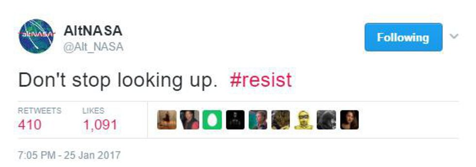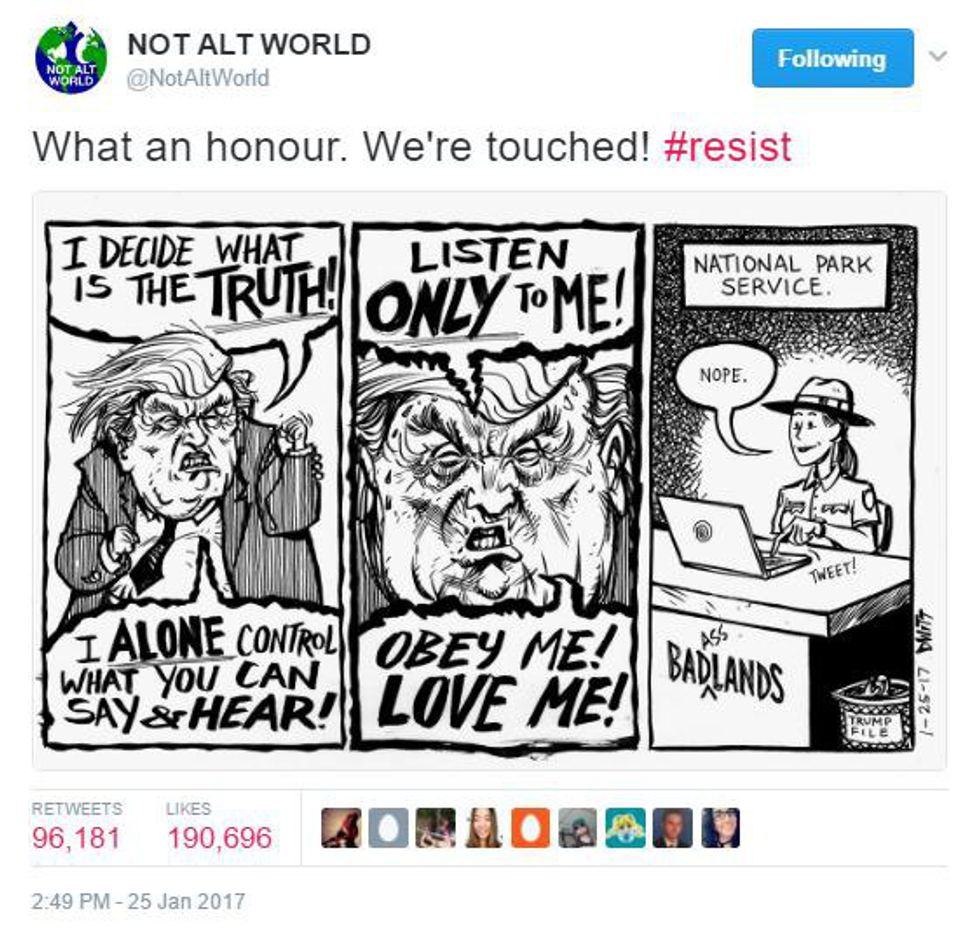 Now that the new Trump administration has done very questionable actions in the last week, some of which involving the scientific agencies of the U.S. government (and telling them to just be quiet), they are currently taking the bull by the horns and creating resistance Twitter accounts, sharing the real facts. Check out some of the best tweets they have written in the last week.