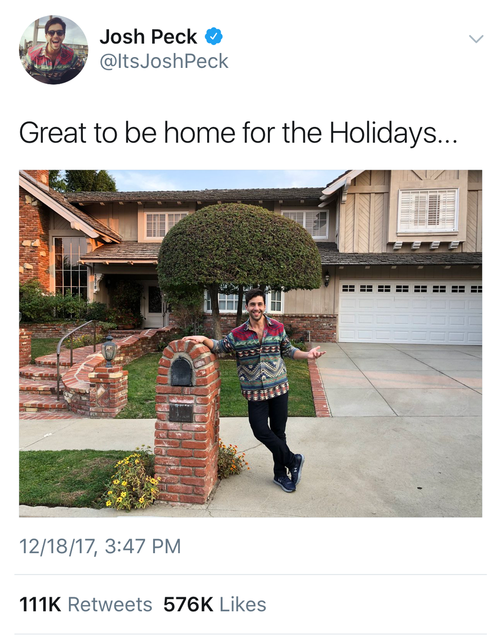 Josh brought us all the feels while going back to visit his old house from the Nickelodeon show Drake & Josh. Home for the holidays, right? I hope you are feeling the same joy that Josh feels when you're home for winter break and no longer thinking about your finals.
