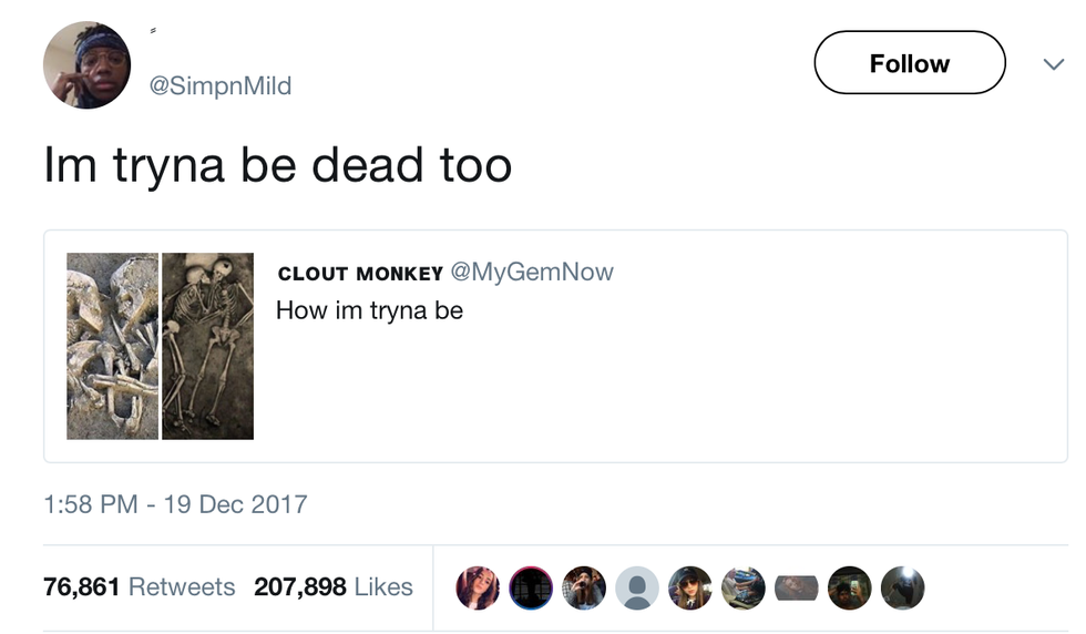 Luckily, we live in the 21st century where we can burrow our sorrow and/or happiness (depending on your level of intelligence and choice of major) in pointless social media platforms that many argue may represent the ultimate contrast to productivity. To absolutely no expense of myself, I provide you with these tweets that I traded precious moments of my life indulging upon when instead I should have been studying, Now that we are all in the clear, I invite you to treat yourself to the feeling of sweet, sweet joy that I still have not yet experienced as I continue to recover from my finals.