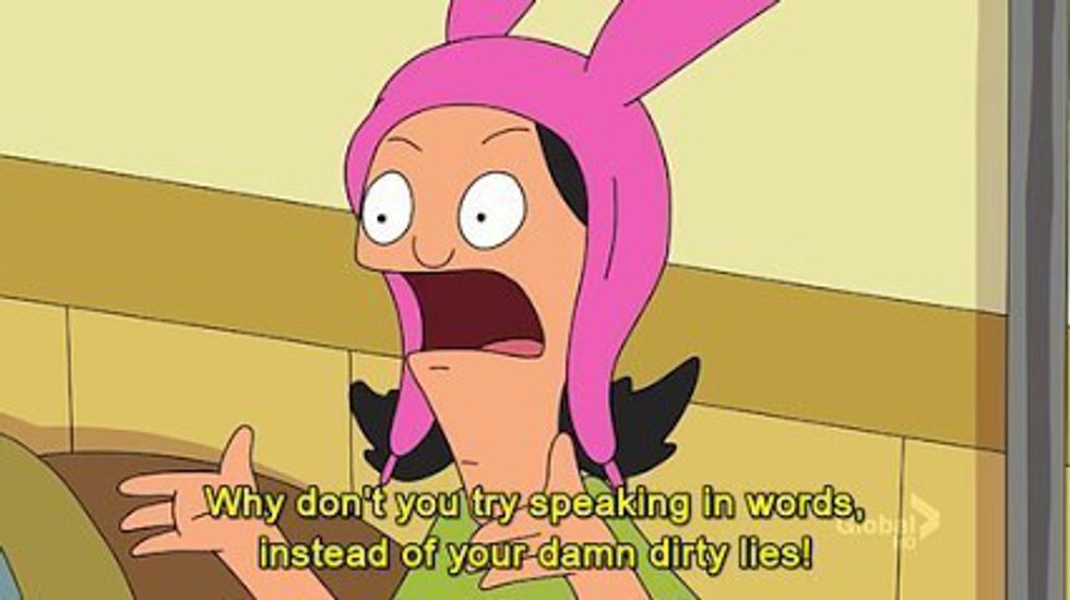 Louise Belcher from the show, Bob's Burgers, is debatably one of the most relatable characters on television today. Her sass, her openness, and her hilarious wit make the show incredibly enjoyable, and her one-liners can apply to so much in life. Check out these twelve Louise-isms and see how any college student can find comfort in relating to a bunny-ear-wearing nine-year-old girl.