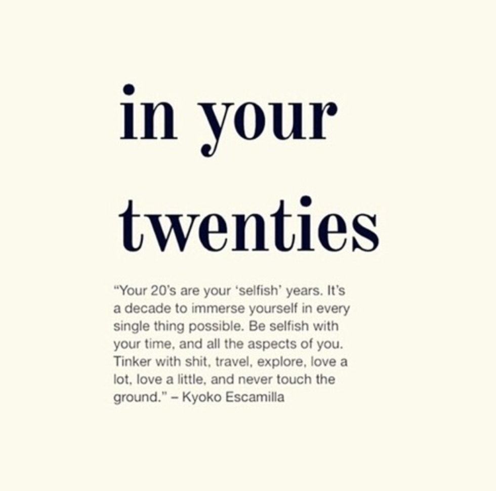 When I entered my twenties last year I was stoked to no longer be a teen. But then, as you get farther into this new decade, you start to panic. Is my major good enough? Will I graduate on time? Am I going to get a job? Do I need to start looking for a husband? Will I be financially stable to get my own place in a couple years? Am I ready to be an adult? Do I still need my parents or can I make it on my own?