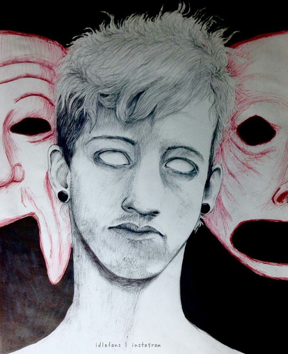 Whether you want to call their unique style alternative rock, ukulele rap, or piano metal, Twenty One Pilots, commonly stylized as "twenty one pilots" or "TØP," is perhaps one of the biggest names out there in the world of emotional music duos. Their most recent album, Blurryface, really speaks to the stuggle of a creative mind. Take the time to absorb these eleven TØP lyrics as they really take a dive into the mind of the emotional creative, each paired with a piece of hand-picked #cliqueart taken from the online art movement made up of twenty one pilots fans, which has been encouraged by the pair of musical brothers behind TØP, Tyler Joseph and Josh Dun.