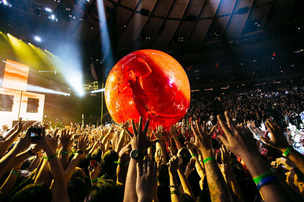 Guns For Hands is the next extravagant part of the show. The song "Guns For Hands" is a fan favorite and here is where they take out the 'Pokéball of Death.' It is essentially a human sized inflatable hamster ball and either Josh or Tyler will climb into it and run across the entire pit before landing back on stage.