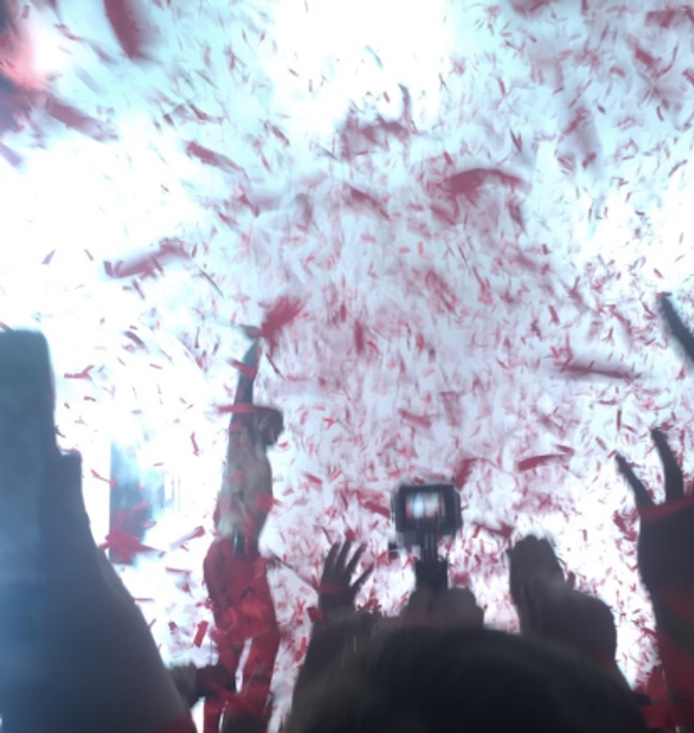 They finish out the song banging the drums to the beat while red confetti fills the room. It’s like nothing I’ve ever seen.