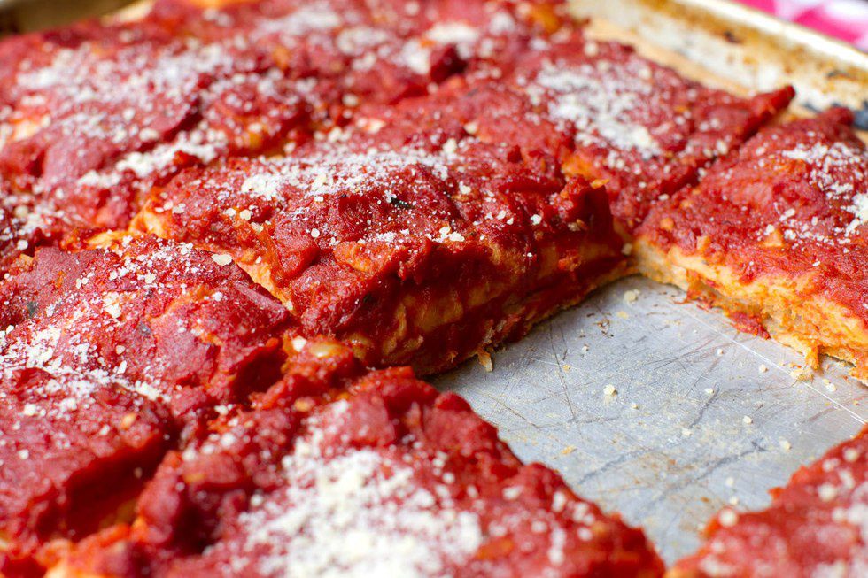 - Tomato pie is bigger than pizza. Like pizza but without the cheese, tomato pie is a Rhode Island favorite. Most Rhode Island natives would take tomato pie over pizza any day.