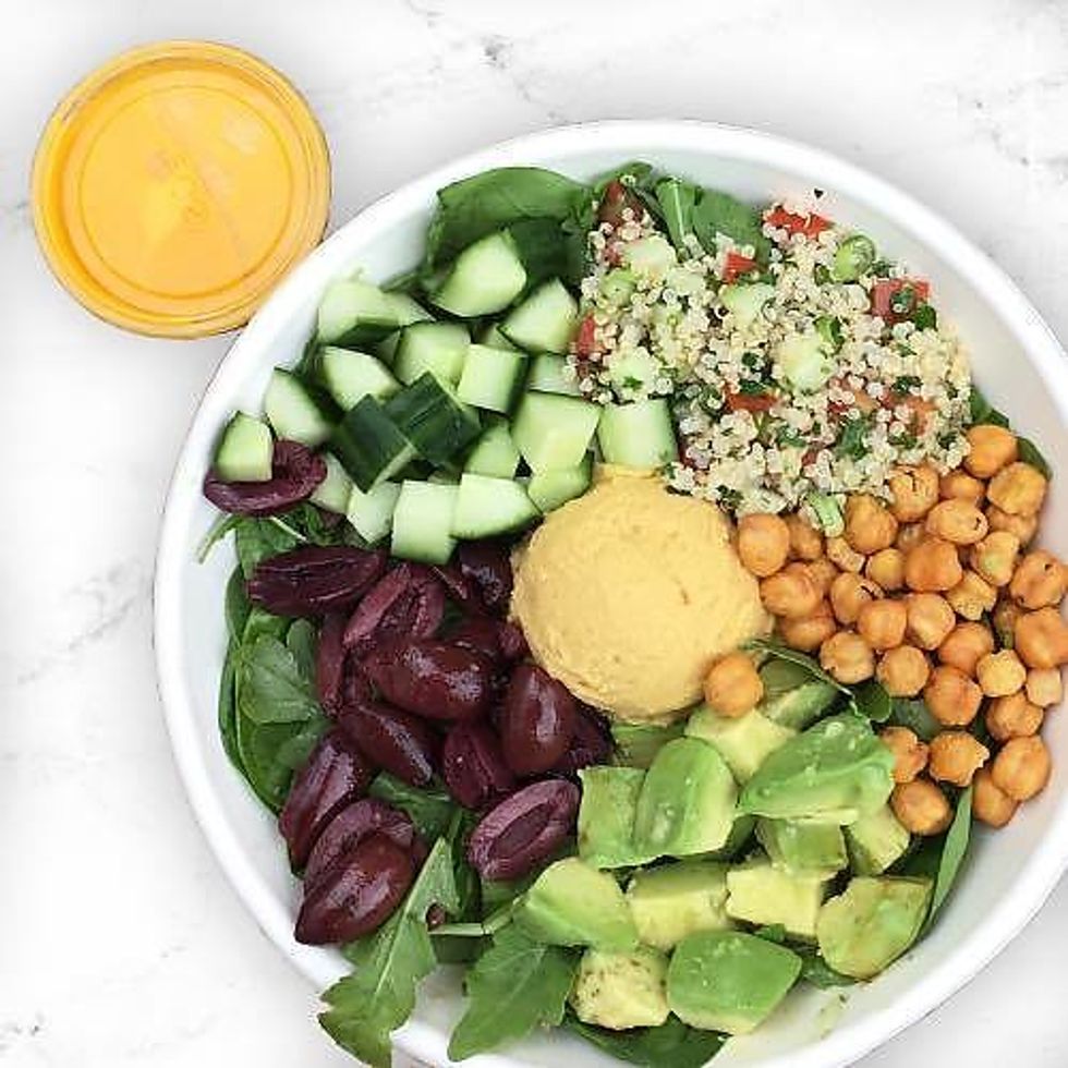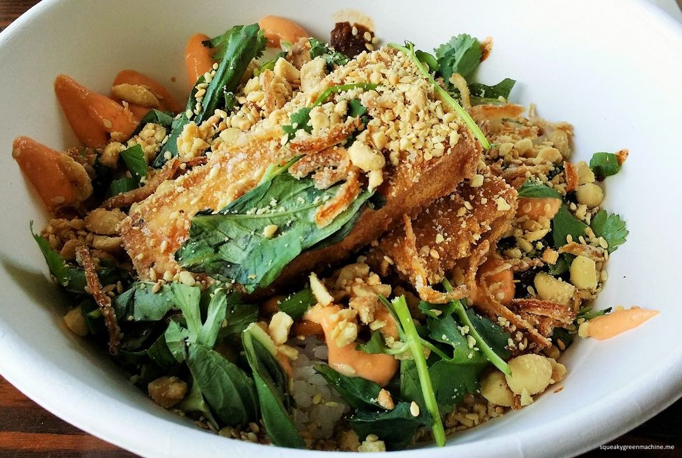 A trendy, on-the-go restaurant with gourmet salads that offers plenty of vegan options.