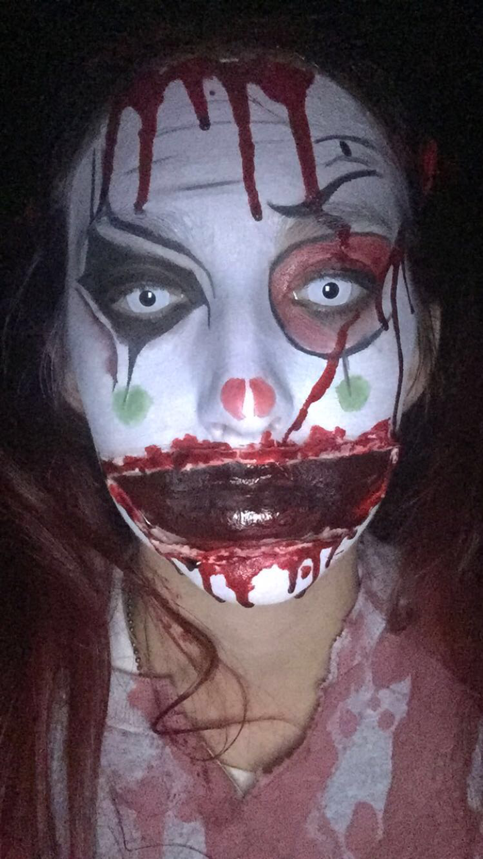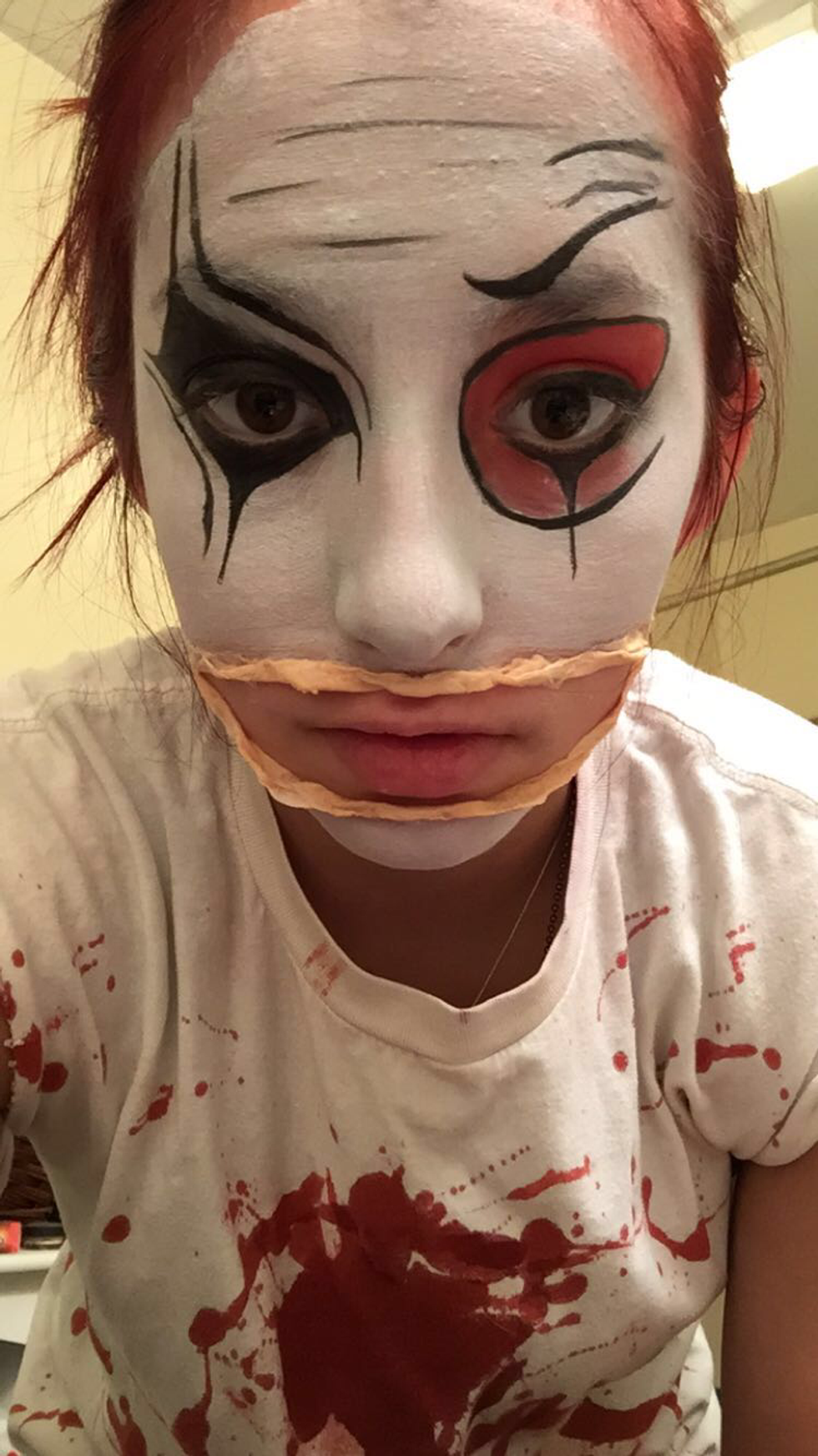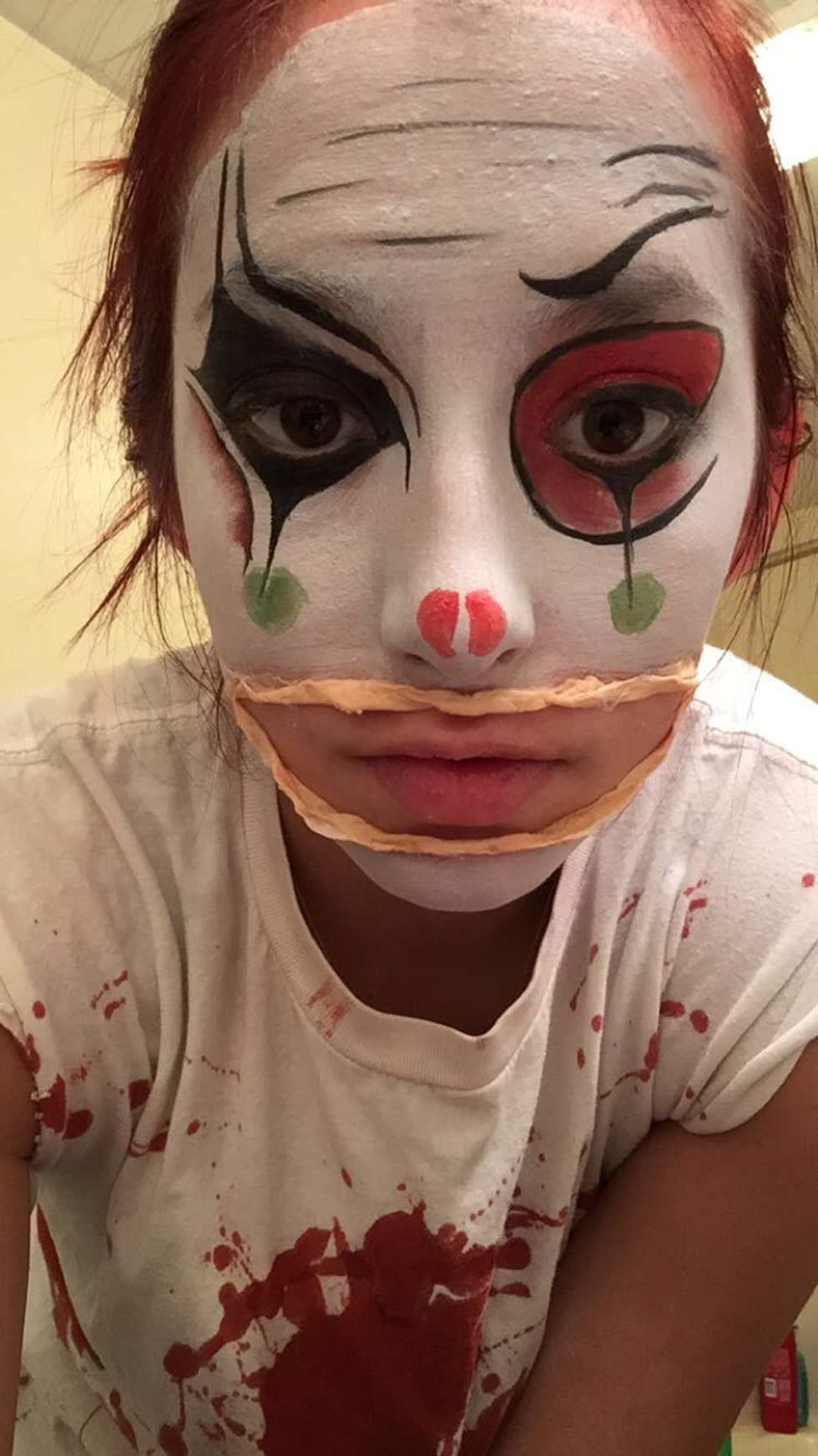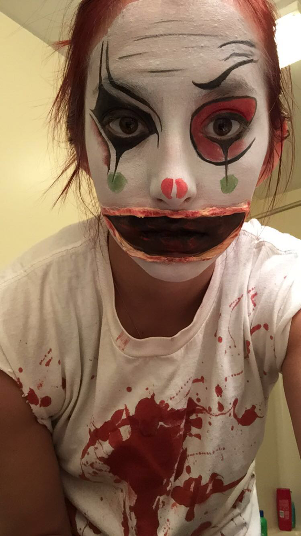 Important: I did this makeup for a haunted woods that I'm working at. I do not suggest doing this makeup unless it's for a similar reason or for a party due to the clowns terrorizing neighborhoods across the country. I was even nervous to walk down the street to the woods from where I parked. I would rather you all play it safe than come across the wrong people and possibly get injured. Do this makeup with caution!