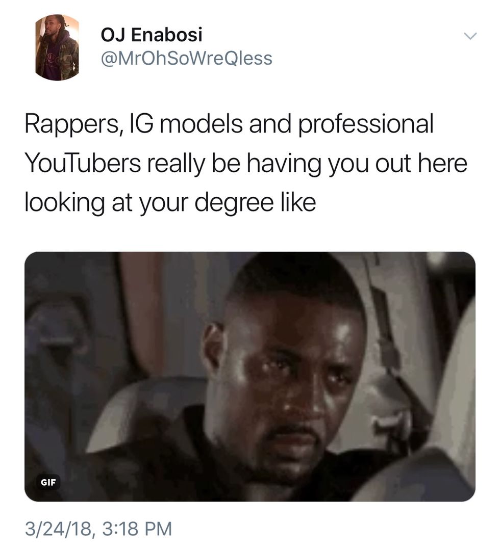 When looking at the lavish lifestyles of professional YouTubers, I question if the thousands of dollars of debt for my degree is worth it.