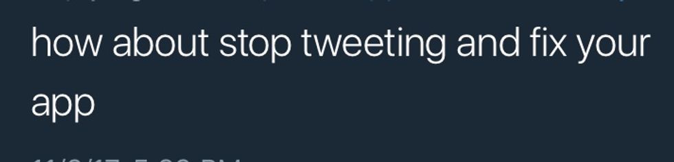 However, multiple users had already tried Snapchat's version of the whole "turn it off and then turn it back on" solution by the time the second tweet was posted...and that, my friends, is when Snapchat users swarmed to Twitter in hopes of expressing their frustrations with others experiencing the same exact problem, bringing a light to the hashtag, #SnapchatDown. I mean, if you can't Snapchat it, the next best thing is to tweet it, right?