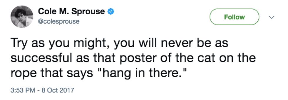 His bio says "fan account for Dylan Sprouse." This says it all. Prepare to enter the stream of consciousness that is the former Disney Channel actor's twitter.