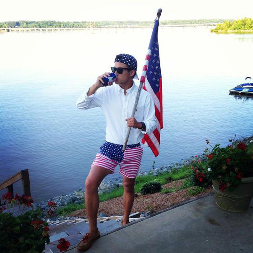 American flag Chubbies are a must-have for this look, along with some Sperrys and a cold can of Natty Light. Maybe even take a quick picture for your Instagram followers to show them just how fratty you truly are. #Merica