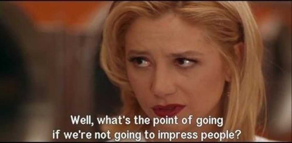 As much as you try to avoid it, you will most certainly have an encounter with the mean girl who never changed. In fact, she still lives in the area. And she lives for her country club tennis group. After the usual "Hi, how are ya?" and judgmental up-down look you so grudgingly remember from 20 years back, it's best to just steer clear of this one and do a little victory dance in the corner because no matter what you've accomplished in twenty years, you aren't that.