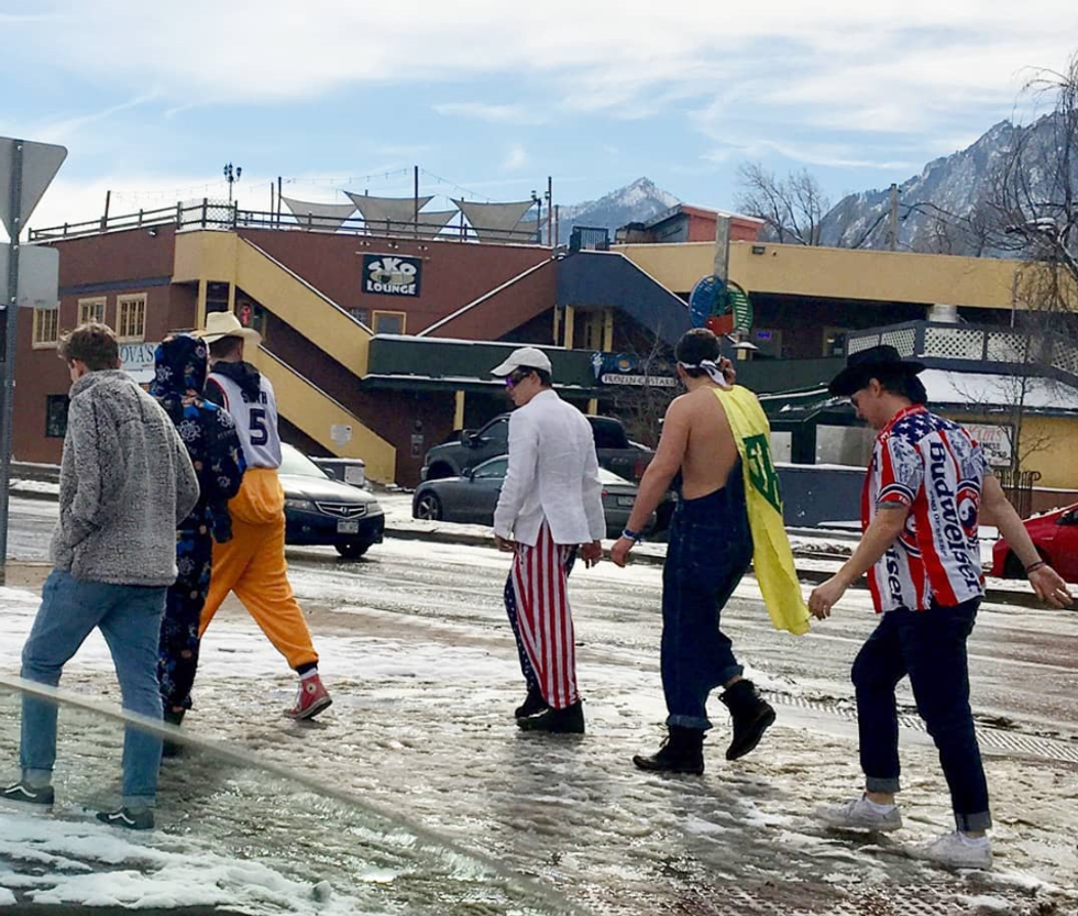 The likelihood of sighting a frat boy on the streets of Boulder is higher than you would think. They're everywhere, and sometimes they're dirty too. Chubbies and sports jerseys are the name of the game for these ones. If found, please return to the hill.
