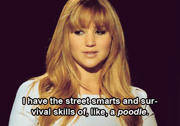 Like many others, I love Jennifer Lawrence, from playing the leading role in The Hunger Games series to Silver Linings Playbook, you cannot deny that she is a great actress. Lawrence also seems like a very down to earth person. After tripping for the second time at the Oscars, last year, she took it to Twitter to joke about the incident rather then fret over it. Whenever I read about her in magazine articles, or watch an interview of her, she is always joking around about her life and does not seem affected by the limelight. So here is my ode to Jennifer Lawrence's awesomeness, by presenting you with a typical college girl’s life -- as told by Jennifer Lawrence gifs.