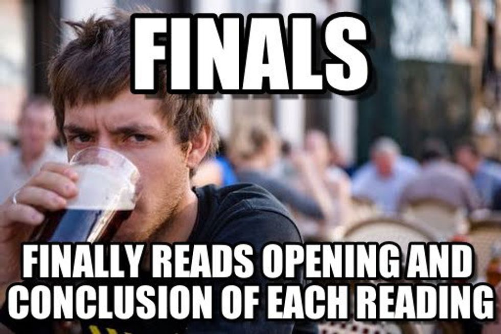 You think you are being proactive by starting homework at 10pm the night before it is due. Because you know most people in college start homework at 11pm the night before it is due. You see that the homework is fifty pages of reading and you soon realize you are not doing the homework. Your friend then texts you, “What’s the reading on” and your response is simple… you are not doing the reading.