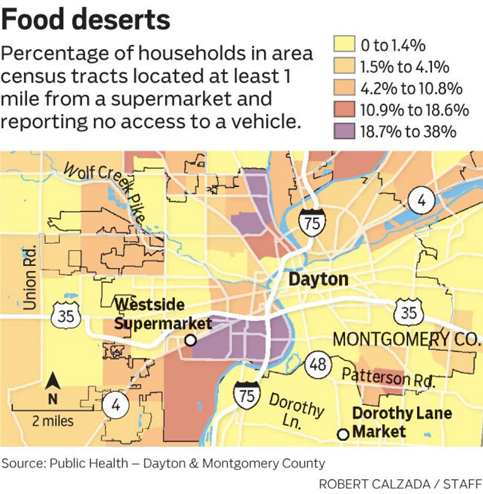 An article on WHIO.com from May 2015 states that the current options for those living in that area include “a discount grocer and a smattering of corner markets.” These corner markets buy cheap from big chains and then upsell to the people in these areas, who have little to no other options.