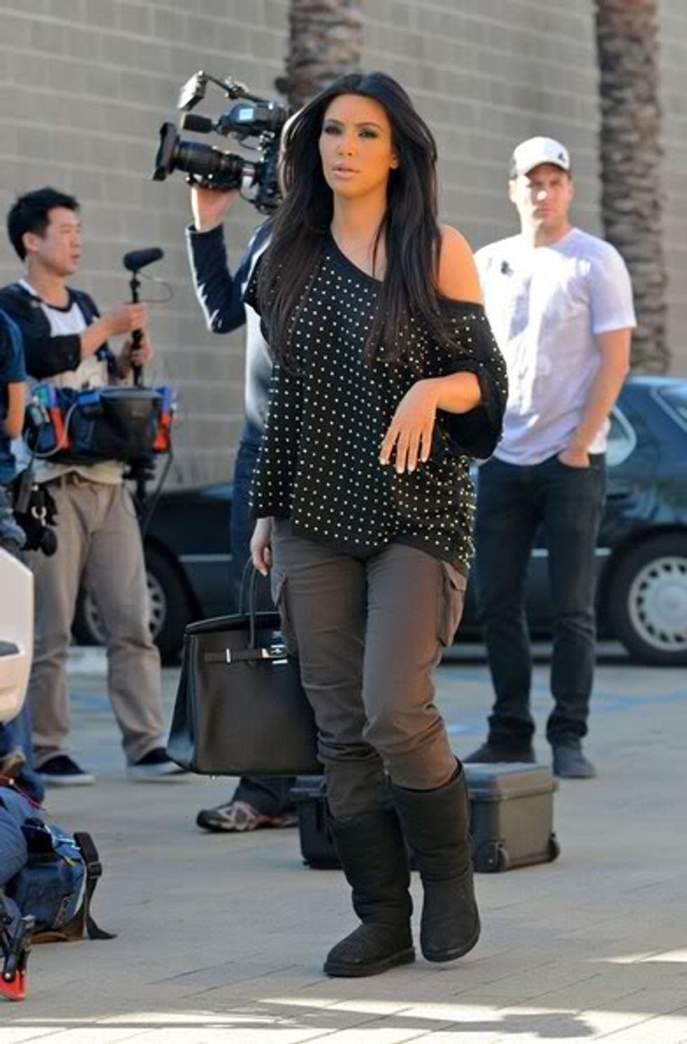 Kim Kardashian is fabulous. This outfit is not. Pass on the tall boots unless you plan on rolling them down. They slouch with age and increase your sloppy quotient exponentially.